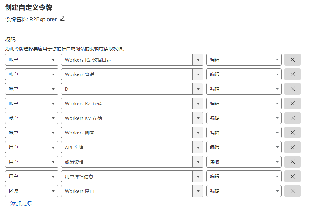 进入 https://dash.cloudflare.com/profile/api-tokens 申请 Cloudflare API Token,对应权限如下: